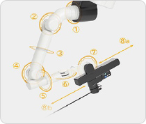 アーム先端の鉗子は人の手よりも大きな可動域があり、手振れもないため非常に繊細で精緻な手術を安全に行うことができます。「hinotori」の4本のアームはそれぞれ8つの関節を有しており、従来の手術用ロボットよりも多く、より人の腕に近い設計となっており滑らかな動きが可能です。